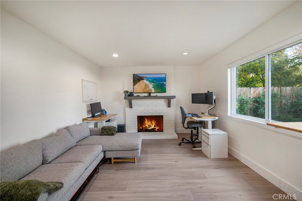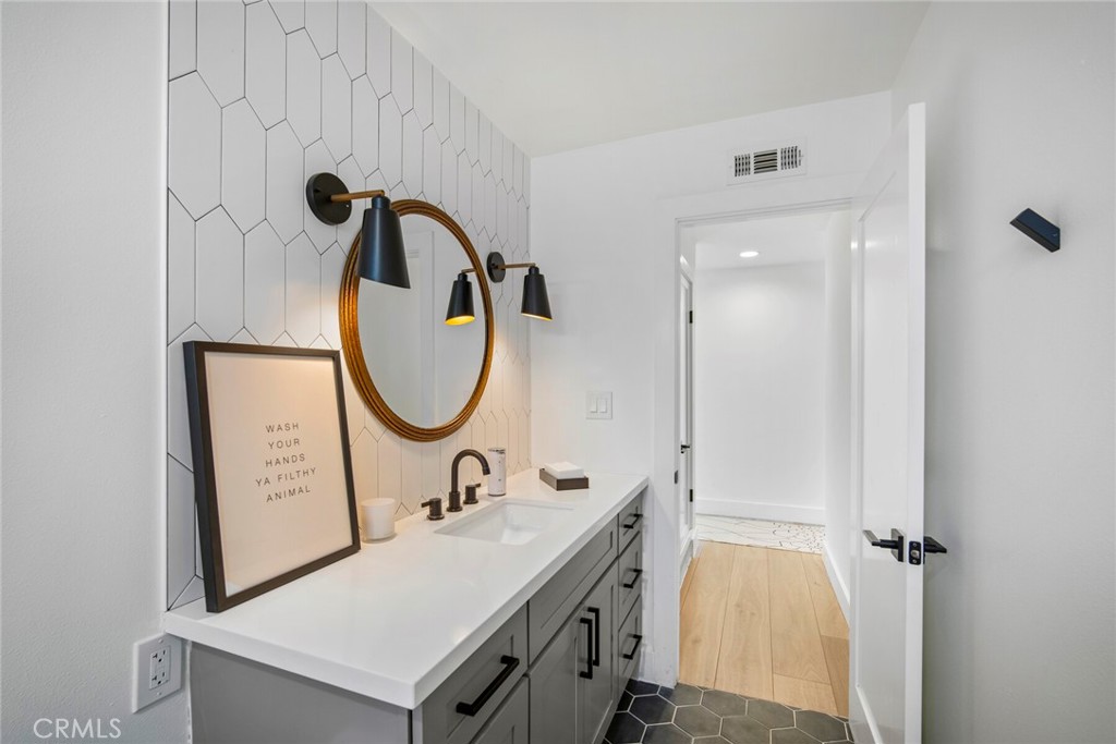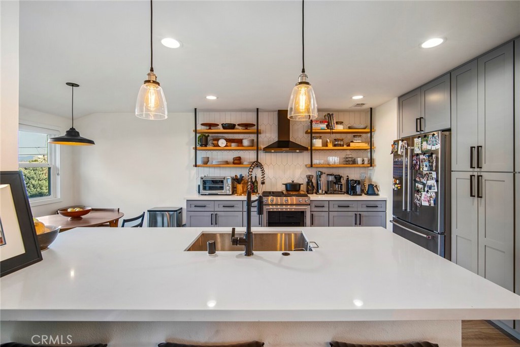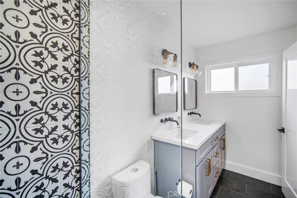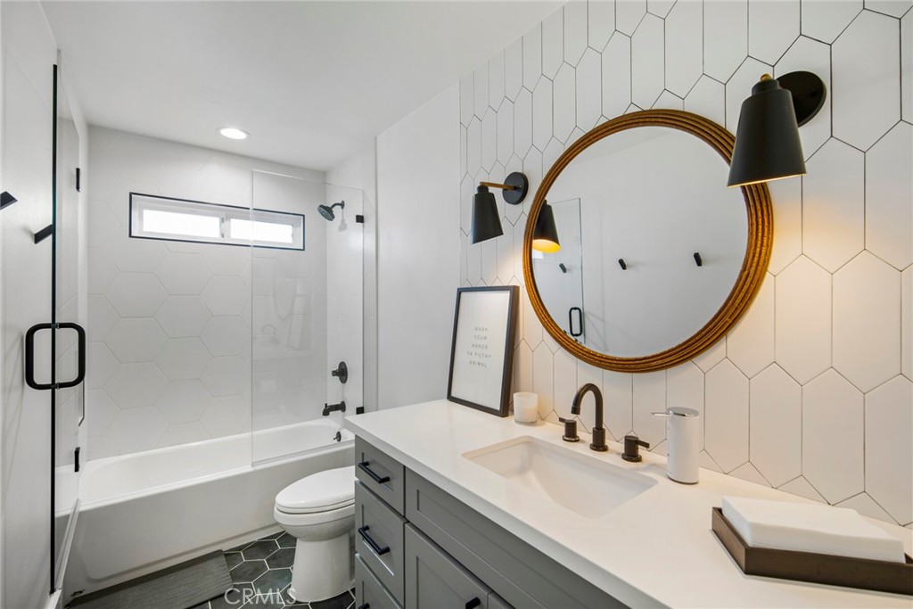 Of the highest caliber remodels, this Farmhouse Modern home occupies over a quarter acre parcel with an array of bespoke amenities. Privately positioned on a 11,475 SF lot, this up-to-date home is completely fenced in with lush landscape and mature Olive Trees. Upon first impression, this property is truly stunning. Hand-laid block wall retains the private landscape creating an oversized front yard perfect for entertaining. Upon entering through a charming Dutch-Door, the great room is about as appealing as they come. This classy, yet modernized space is sure to impress with one large great room teaming an open kitchen with quartz counters, commercial range, stainless appliances, morning breakfast nook, wide-plank floors, smooth drywall, and a plethora of glass doors leading to the large backyard. An added bonus, the adjacent accessory lounge room has a wood-burning fireplace which invites community and is perfect for those cozy winter nights. The floorpan is extremely versatile having two bedrooms and the primary suite on the first floor and two guest rooms with full bathroom on the second floor conveniently positioned across the home perfect for those seeking privacy. Brining the outdoors in, each room is flooded with natural light through a plethora of large dual-pane windows. The master bedroom boasts a beautiful and modern en-suite bathroom with dual vanity and a stunning Moroccan-tiled accent shower wall. The second bathroom is a hall-accessed full guest bath with a large vanity complimented by large-format hexagon tiles framed with contemporary satin sconces. Off of the main living area and separated above the garages (as previously mentioned) is a unique guest-quarters wing perfect for an in-law suite, office, kids play space, etc. Featuring two generous bedrooms and bathroom, one bedroom having a wood-burning fireplace, these spacious bedrooms have endless potential and flexibility perfect for a multitude of uses. This home is perfect for the growing family or those who love to entertain. Its large yard and functional floor plan is truly a must see.