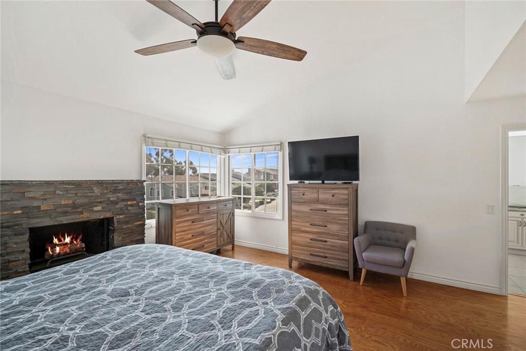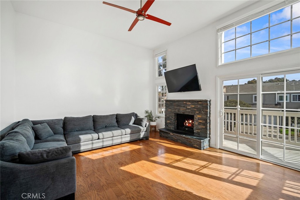 Rare to market, cathedral ceilings Dana Point condo priced under one million dollars. This spacious, light-filled home with floor to ceiling windows provides all of life's essentials. Location is ideal being approximately two miles from the up-and-coming, revitalized Dana Point Harbor and two miles from the 5-freeway. Neighborhood amenities provide fun for all including a sports court, pool, and spa all while being located in a safe and secure gated community. The home provides an oversized two car garage as well as DUAL primary bedrooms both having ensuite bathrooms. The hardwood floors provide a warm feel to the home and are complimented by the freshly painted interior showcasing a light and bright ambiance throughout. Two unique features of the front primary suite is the rolling San Juan Capistrano hills view framed perfectly beyond the in-room fireplace and the one-of-a-kind massive walk-in shower and dual vanities. The overall flow of this home lives extremely well providing intentional spaces perfect for entertaining and designed perfectly for day to day living. In-home laundry and bar-style sink provide additional convenience as well as the spacious patio set off the kitchen perfect for bringing community together and weekend barbecues. A special home and great opportunity that's perfect for you. Welcome home.