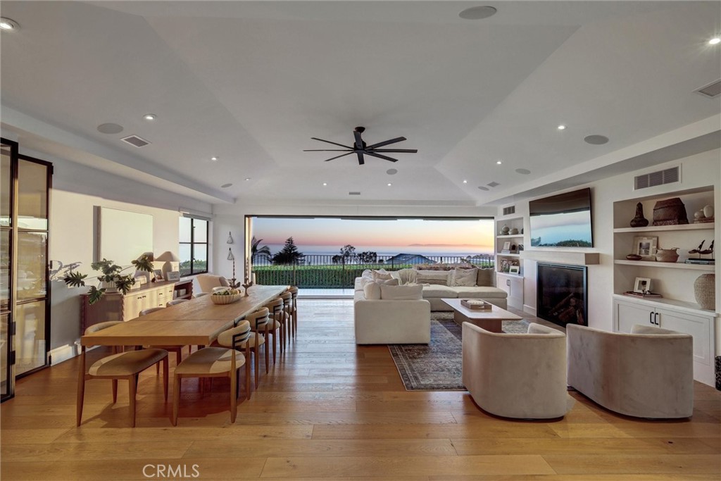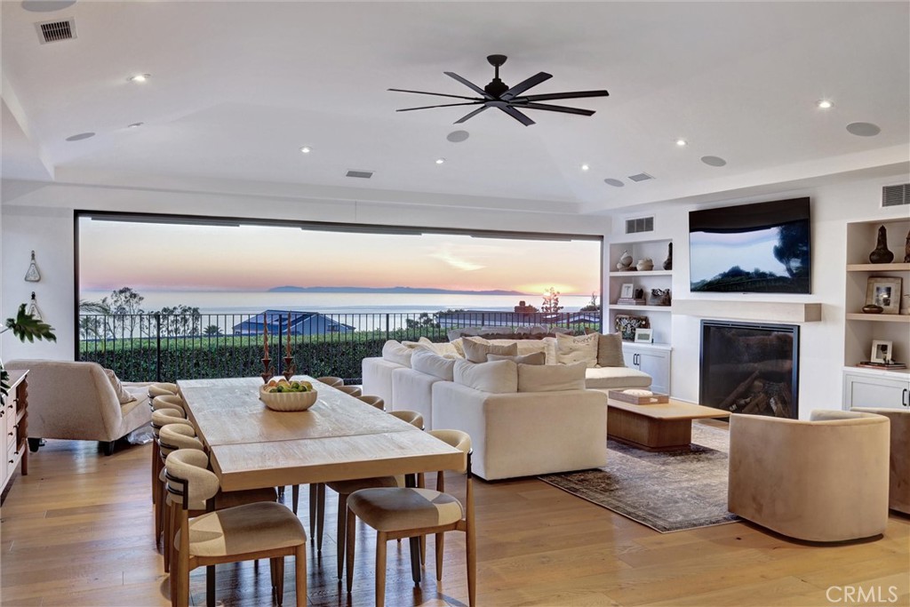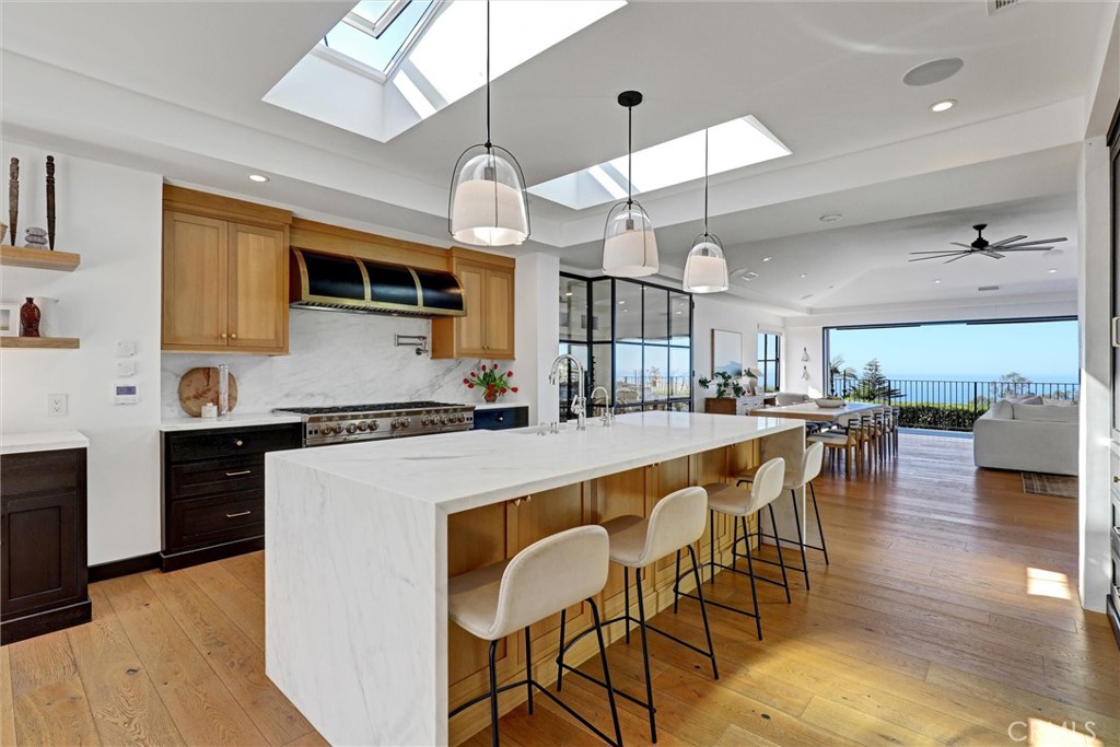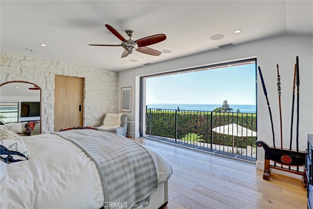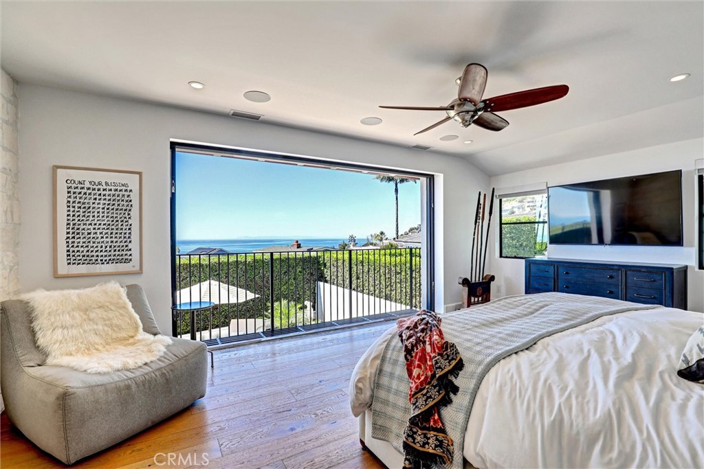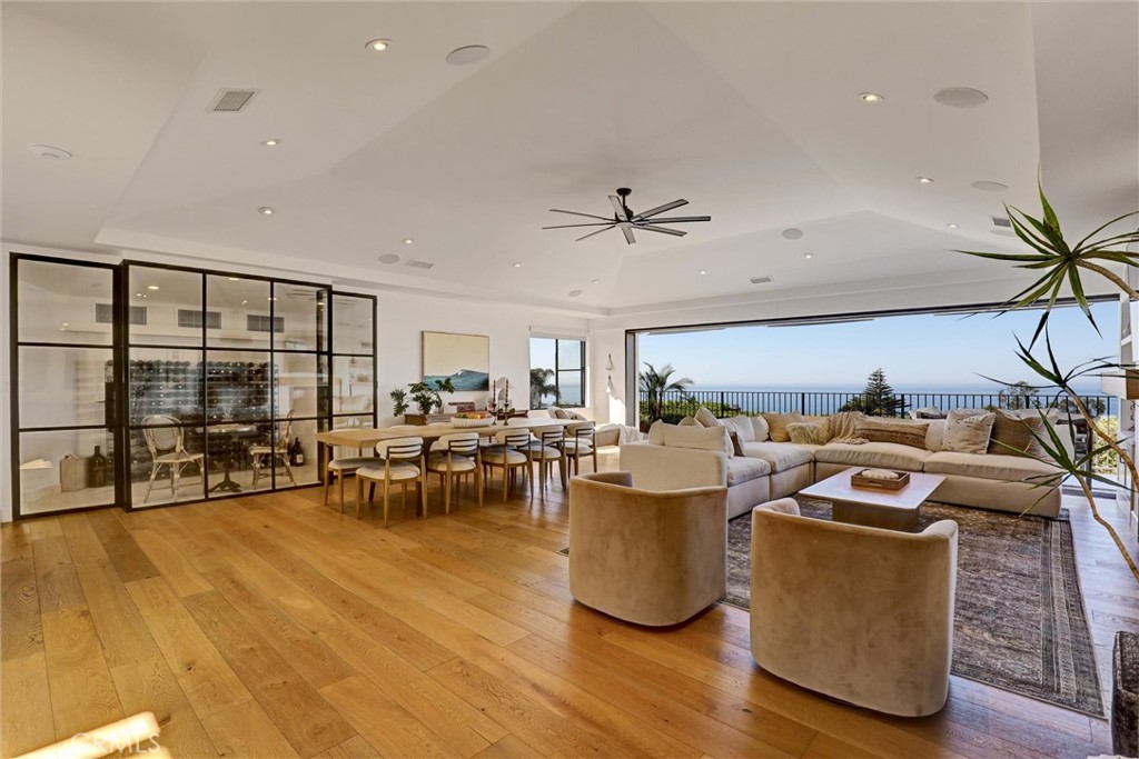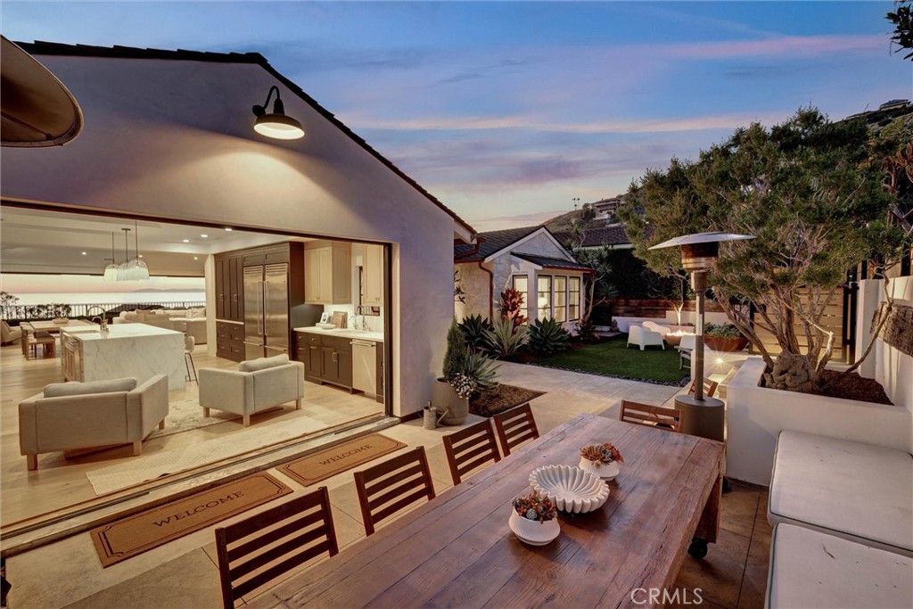 SUMMER RENTAL - 30 days minimum - Available June - September 2026. Nestled within the prestigious guard-gated community of Three Arch Bay, this contemporary masterpiece offers an exceptional summer vacation experience defined by luxury & design. Approximately 4,158 square feet, this 5-bed, 4.5-bath residence is thoughtfully designed with a reverse floor plan, allowing the home to live like a single story. The main living spaces--including the kitchen, living room, ocean-view deck, and front entertainment yard--are all located on the entry level. The open-concept living area is anchored by wide-plank white oak flooring & a retractable sliding glass wall that seamlessly blends indoor & outdoor living. Relax on the comfortable & cozy L-shaped sofa while enjoying sit-down panoramic views stretching across Catalina Island, San Clemente Island, & the iconic Dana Point Headlands. The chef's kitchen is both functional & stunning--featuring a 10-burner gas range, double refrigerators, double dishwashers, dual sinks, & an oversized eat-up island. Elegant marble countertops, floating white oak shelving & custom cabinetry in white oak complete the space. Just off the kitchen & dining area, a temperature-controlled wine room sits behind a sleek custom glass wall, perfect for summertime entertainment. The entry-level primary suite is a private retreat, offering lay-down ocean views through a sliding glass wall. The suite includes a spacious walk-in closet with its own stackable laundry, as well as a luxurious ensuite bath with a large walk-in shower, a freestanding soaking tub, & a private enclosed water closet. An additional guest bedroom with ensuite & a stylish powder room complete the upper level--totaling two bedrooms, two ensuite baths, & a powder bath on the main floor. The floating staircase leads to the lower level, where a comfortable family TV & playroom opens directly to the backyard. Downstairs, you'll find three additional generously sized bedrooms, including a fun bunk room with three beds, along with two full bathrooms & a separate full-sized laundry room. The backyard is designed for privacy & leisure, surrounded by lush green hedging & offering a variety of outdoor amenities including cornhole, ping pong, & a comfortable seating area. As an added bonus, the rental includes a golf cart for easy access to the private beach & community amenities, allowing you to fully enjoy the coastal lifestyle that makes Three Arch Bay so sought after.